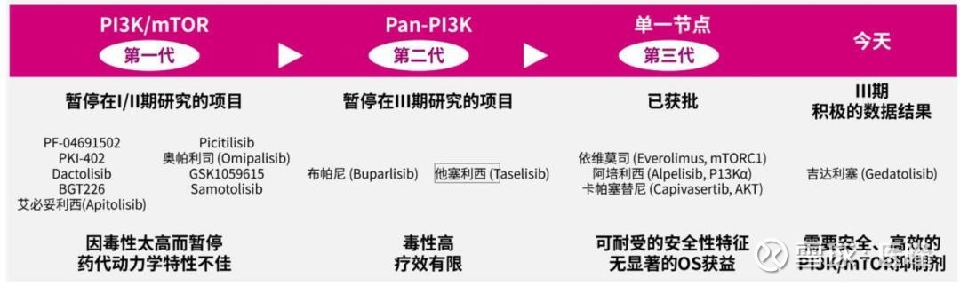 辉瑞的退出并不让人意外,因为过高的毒性使得PAM通路失败的管线比比皆是。为了降低毒性,不少公司选择单一靶点开发药物,虽然安全性有所提升,但却始终没有取得显著的OS获益。