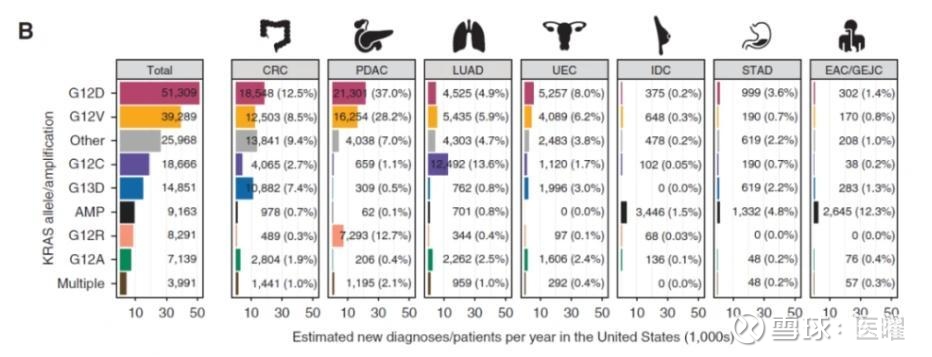 图:美国新确诊癌症患者KRAS突变的比例,来源:药明康德