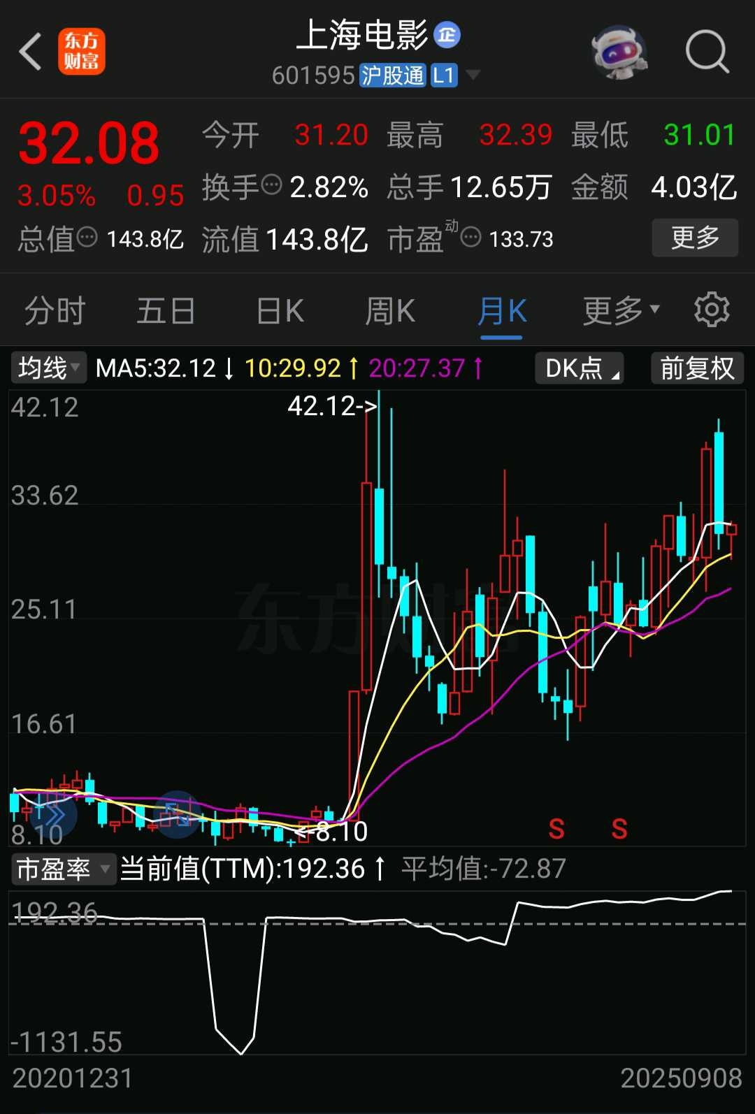 果麦IP变现新业务可比公司上海电影,上文提到,21年上海电影收购IP变现业务的上影元公司70%股权,增加市值约100亿,上影元23年、24年和25年上半年净利润分别为:0.16亿、0.27亿、0.13亿。公司原业务主要是电影院放映业务 ,该业务疫情期间连续亏损,23年稍有改观,但此业务毛利率仅1.57%,剔除期间费用大概率亏损,24年此业务毛利率-2.6%,再次亏损。