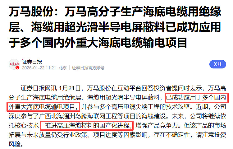其中,国内海缆龙头(最优先、最现实的出海伙伴)。万马已与国内头部海缆企业在国内项目深度绑定,这些企业正加速出海,是万马海缆料 “借船出海” 的首选。