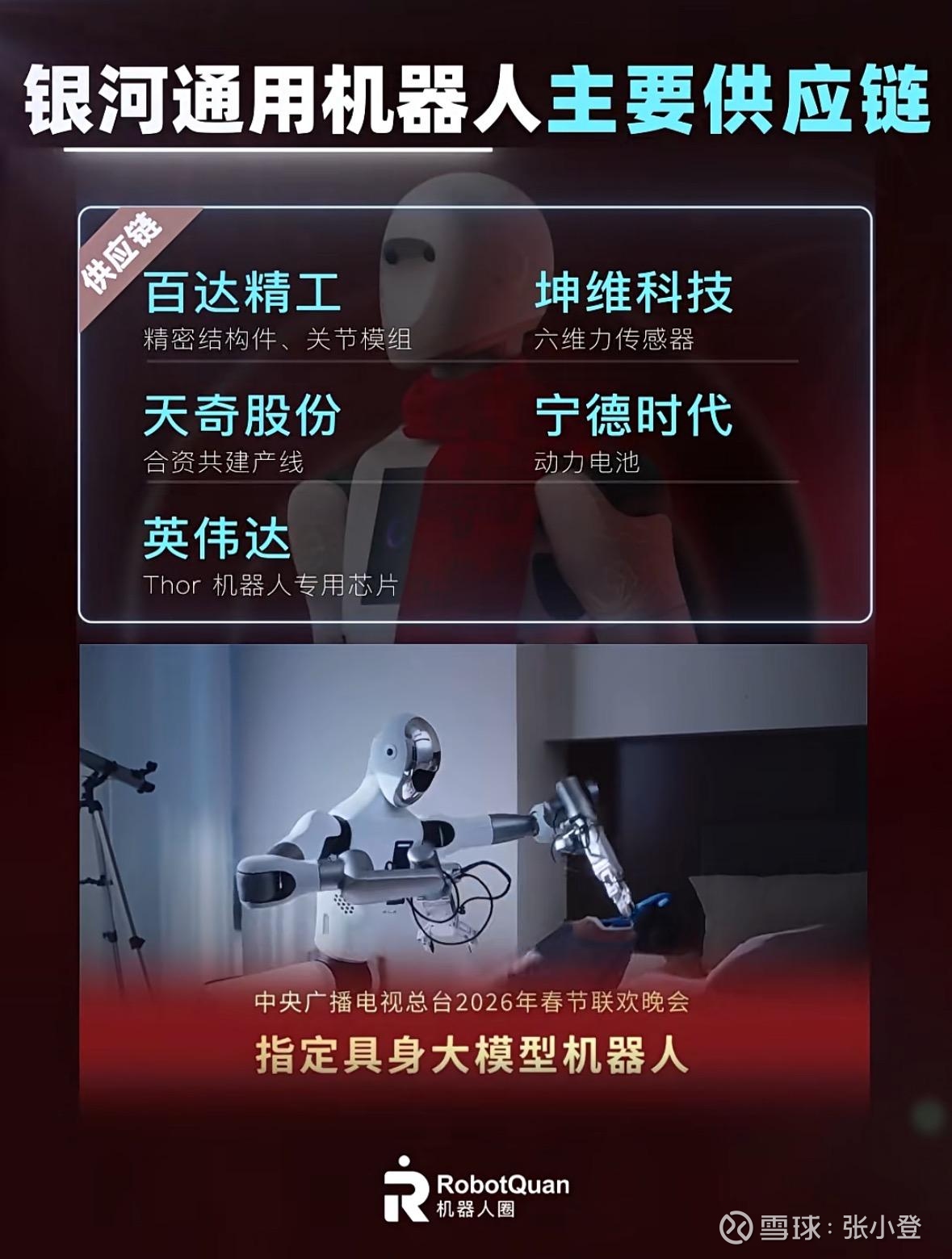 2026年春晚指定了具身智能机器人,核心技术支持方是银河通用和魔法原子两家未上市企业。市场目光自然聚焦到了与这两家都有合作关系的上市公司——天奇股份。