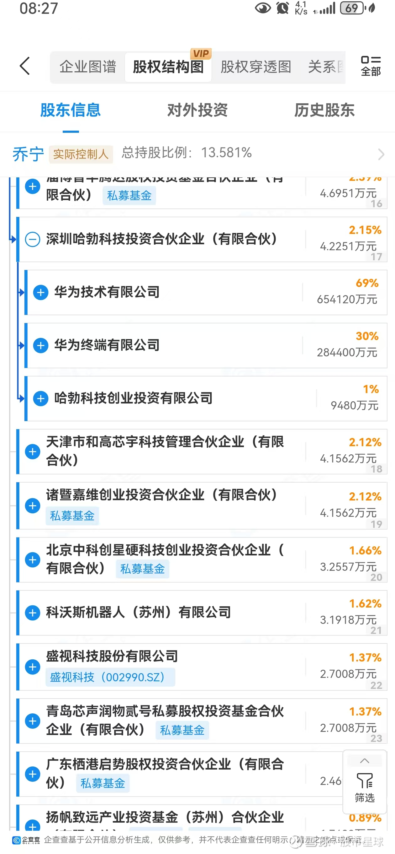 查看时识科技的股权结构也是相当牛逼,华为投资!