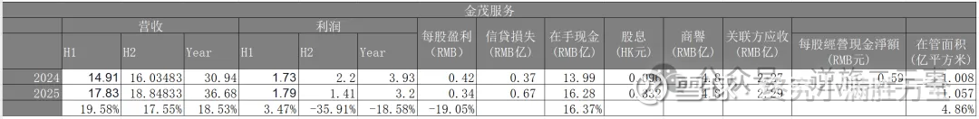 二、公司质地够硬不?1.057亿方管理面积,几乎等于永续经营,这几年行业有挖墙脚,也有业委会踢出物业管理方的情况发生,但占比都比较少,物协有这块数据。16亿现金在手,也有銀行利息收入一千多万,说明钱就躺在账户里收着息呢。再看营收占比,物業管理服務营收占比从24年的70.7%增长到73.3%,这就是物业的基本盘,哪怕非业主增值服务和社区增值服务全没有了,光这个基本盘还有3.93亿毛利。