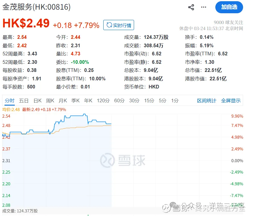 2025年金茂服务营收增长还是可以的,增长接近18%,在手现金及等价物从14亿增长到16.25亿。最夸张的是25年全年分红每股0.222元港币,财报甫一发布,今天市场就以暴涨8%来回应。
