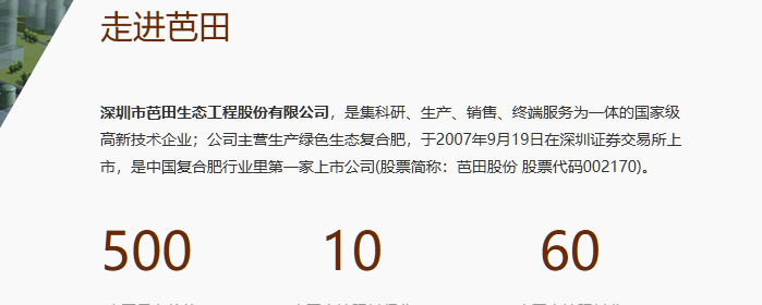 公司成立于1989年,并于2007年在深圳证券交易所上市,是中国复合肥行业里第一家上市公司;