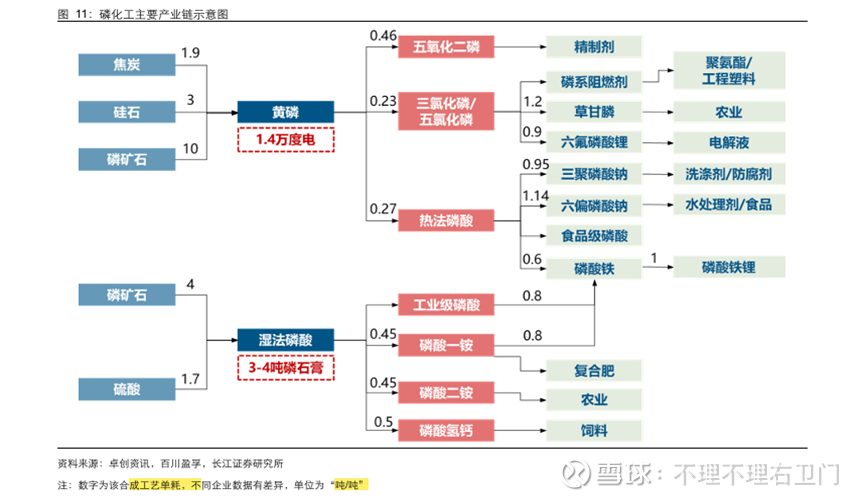 1-产业链:磷矿石是磷化工产业链的核心上游原料,磷矿石加工可分为湿法磷酸和黄磷(干法)两条路线,湿法磷酸主要用于生产磷肥、饲料钙;黄磷主要用于制备草甘膦、热法磷酸、磷酸盐等;磷化工品广泛应用于农业及工业,磷肥是农作物生长的必需养分,磷盐广泛用作食品添加剂、洗涤剂、新能源材料等。