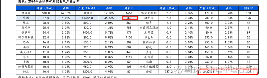2-我国磷矿石储采比较低,若要做到资源可持续,需保证磷矿有序开采:我国磷矿石储采比仅33年(资源量和年产量的比值),在全球主要磷生产国中处于较低水平。摩洛哥储量超500亿吨,占比超67%,但产量只有3000万吨每年,开采率十分低下。