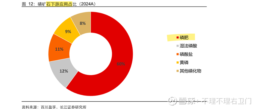 1-磷矿石下游应用主要为磷肥占比60%,湿法磷酸占比12%和磷酸盐占比11%。