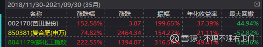 4:18年11月-21年9月,三年大跌过后开始三年恢复期,期间涨幅150%,复合肥行业涨幅75%,跑出超额;期间营收触底反弹,净利润明显改善;估值维持在50倍附近—业绩提升