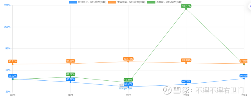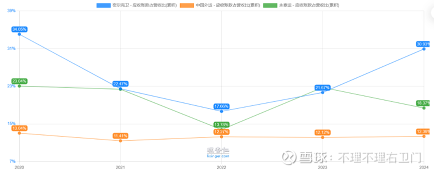 2-应收/应付—上下游话语权均较弱:公司应收账款提升较快,尤其是24年占比已经达到30%,远超同业不到20%的水平,公司对于下游客户的话语权较弱(中国外运由于规模大切客户都很优质;永泰运对应中小企业也比较强势);应收账款周转天数公司也是最高的;