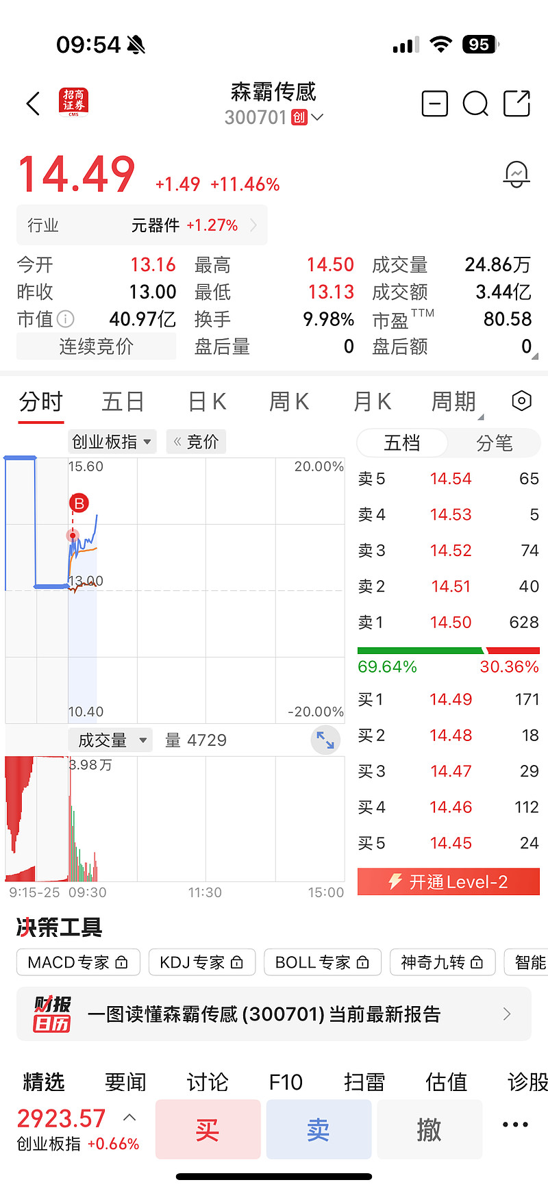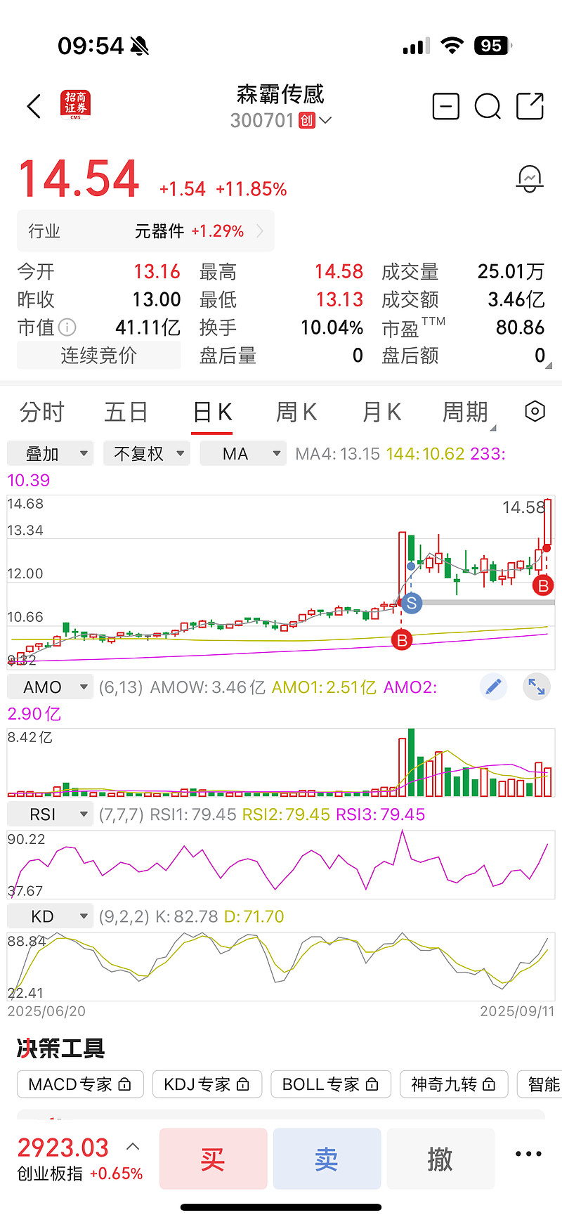 突破吧騷年,今天漲停價也才15.60元,還摸不到紅色壓力位咧,已經是第二次買你咯