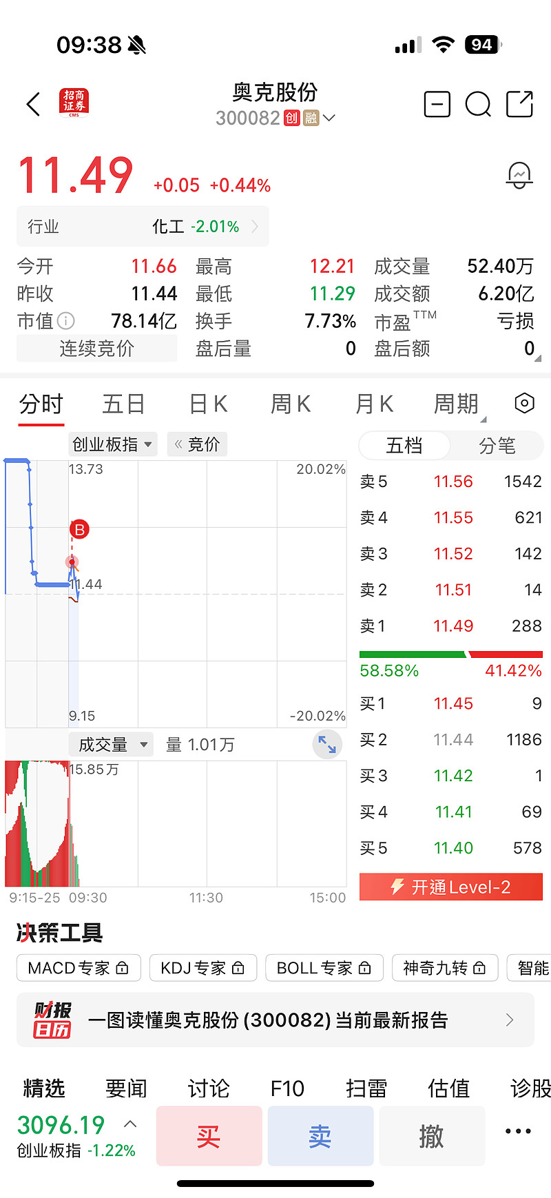 等不及到均線了,要去追票,今天單子也是少的可憐,完全沒有拿你的心情,另外就是奧克股昨天居然是個爛板,這好像很有問題的樣子,日線圖還行,昨日分時圖就很差