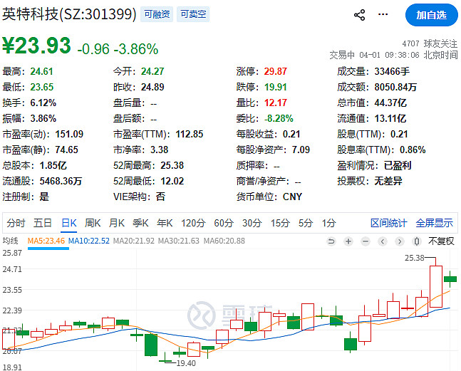 $英特科技(SZ301399)$