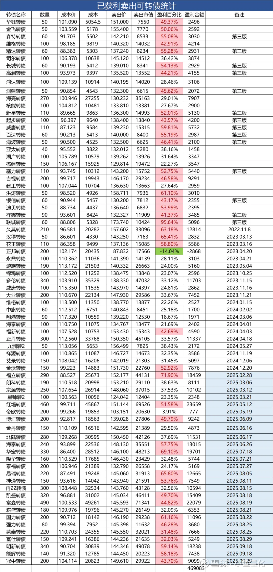 2020年初小鱼精研可转债以来,已获利了结七十三只可转债,总盈利46.91万元。2025年累计清仓26只,盈利26只,盈利金额为26.98万元。