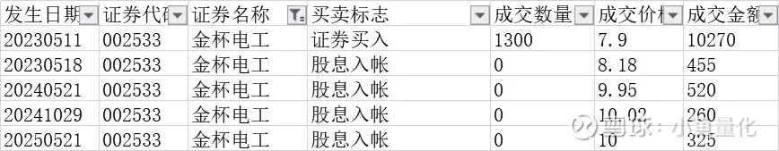 金杯电工这一只股票最早是在2023年5月第一次买入,当时也是小鱼践行高股息投资的初始阶段。金杯电工只买了一次,大概买了一万元多点,后经过四次分红,累计分红金额达到了1500多元,累计分红占本金的14.5%,这个股息即稳定又高效,可谓相当不错啦。