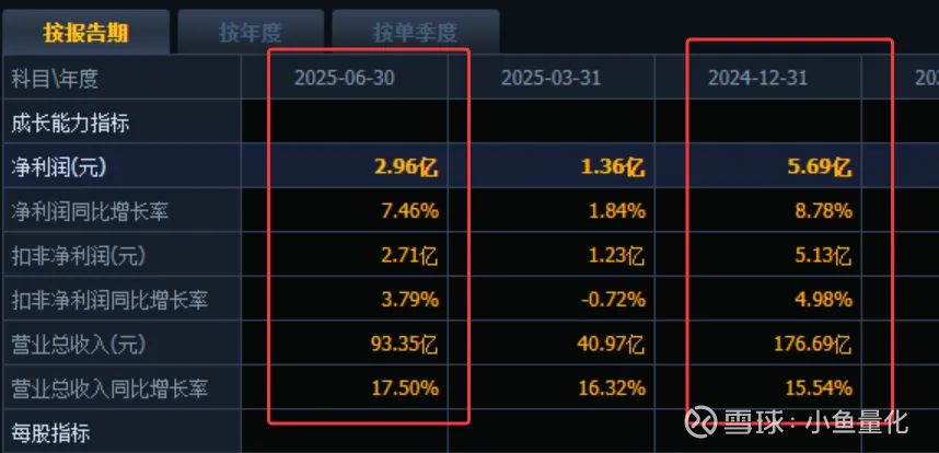 下图是金杯电工的业绩情况,2024年报净利润5.69亿元,同比增长近9%;2025半年报净利润2.96亿元,同比增长7.5%。基本面相当优质。