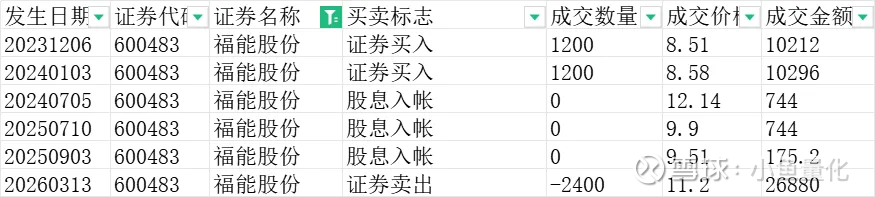 福能股份这一只股票是在2023年12月和2024年1月,总计买了两次,大概2万元出头,中间经历了三次分红,累计分红金额1663元,最终福能股份的成本为7.86元/股。