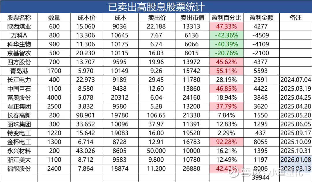 小鱼的高股息组合好久没有卖出操作啦,上周五刚好有一只卡线卖出,给大家说说。