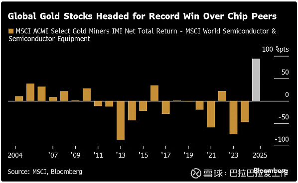 根据 MSCI公司(MSCI Inc.) 的数据显示,全球黄金股票指数今年已飙升约 135%,紧随金价的强劲上涨。这一表现创下对全球主要半导体公司指数的最大超额收益纪录,后者今年仅上涨约 40%。从估值角度看,贵金属行业的担忧远小于科技板块。MSCI金矿股指数 的预期市盈率约为 13倍,略低于过去五年的平均水平;相比之下,半导体指数市盈率高达 29倍,远超其五年均值。