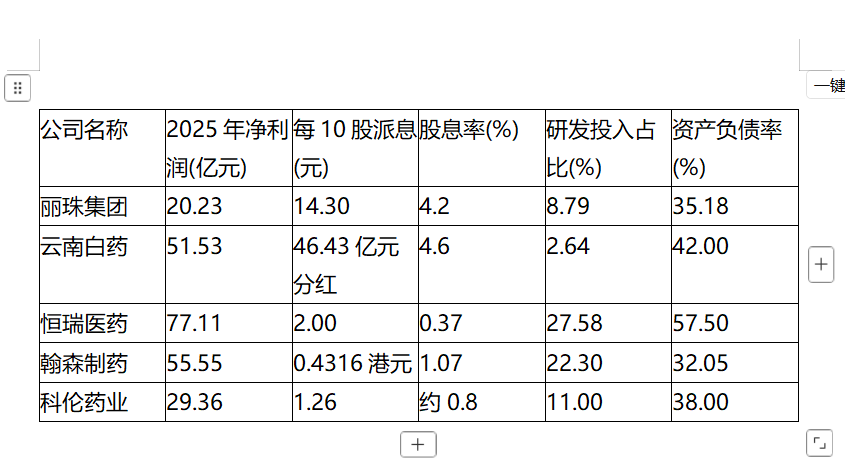 • 丽珠集团是医药板块中罕见的"高股息+高成长"双轮驱动标的,2025年股息率达4.2%,连续多年分红比例超80%