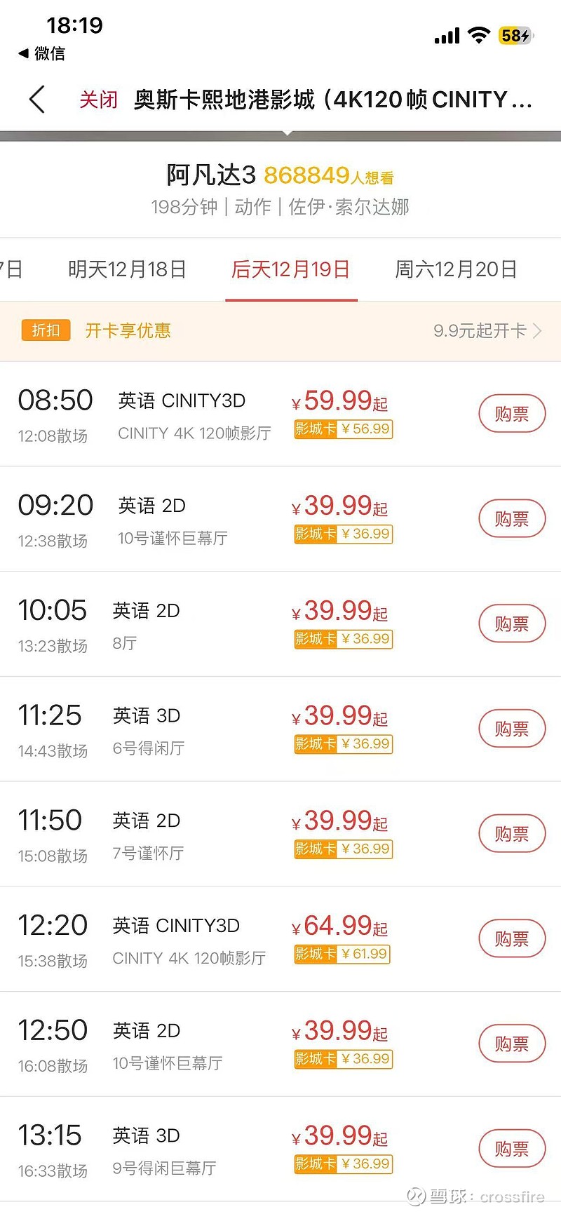 $中国电影(SH600977)$ 横店影城翰海北金店因为上座不及预期直接给我退票了,连CINITY 4K120帧影厅都没怪不得股价这么不给力!