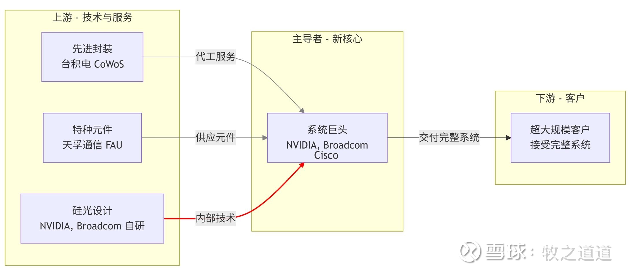技术演进背后是产业链权力和价值的重新分配。CPO的崛起意味着行业从分散竞争走向巨头垄断,游戏规则被彻底改写。这就为什么生态变化非常重要的原因,当然这个时间大概率会在27年之后,但是这对一些公司来说可能就是生死大事,但是对另外一些公司来说,你在CPO的什么位置,做在什么船上,也是决定生死天花板。
