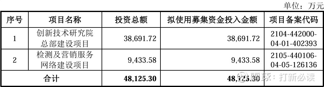 本此拟募资用途:项目总投资资金4.81亿,其中3.87亿用与创新技术研究院总部建设项目,0.94亿用与检测及营销服务网络建设项目,具体项目如下: