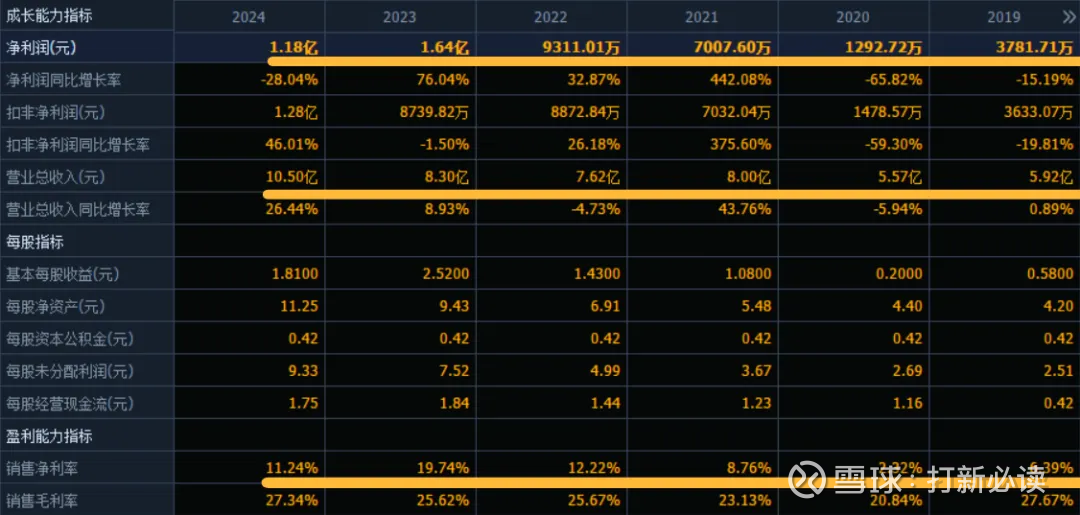 公司 2022-2024年分别实现营业收入7.62亿元/8.30亿元/11.50亿元,增长率依次为-4.73%/8.93%/26.44%;实现归母净利润0.93亿元/1.64亿元/1.18亿元,增长率依次为32.87%/76.04%/-28.04%。