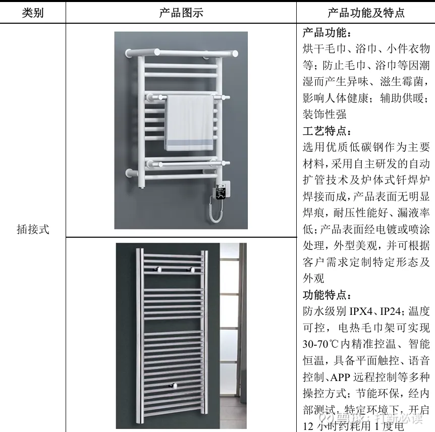 1、依托较强的研发及生产能力,公司成为卫浴毛巾架产品的领先供应商,客户资源优势显著。拥有年产超过 200 万套卫浴毛巾架的生产能力;并在卫浴毛巾架的工艺设计和制造等方面积累了丰富的经验,前瞻性地推出具备智能联网、精准控温、语音控制、APP智能远程控制等功能的智能电热毛巾架。