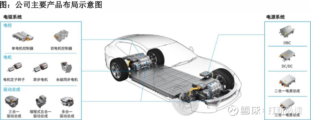 公司投资亮点 1、背靠实控人汇川技术,公司已逐步发展为我国新能源汽车动力系统的行业龙头。在乘用车领域,根据NE 时代统计2024 年中国新能源乘用车市场中,公司电控产品及电机产品的国内市场份额均达10%以上、在第三方供应商中排名第一(总排名均为第二),驱动总成产品份额约6.3%、排名第四;同时在商用车领域,公司亦处于该细分赛道领军地位。