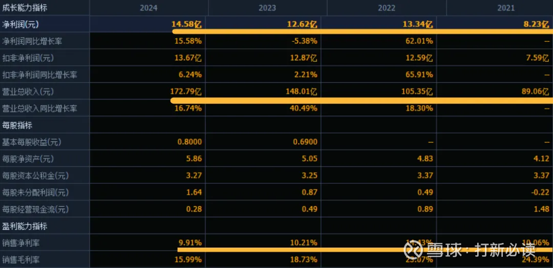 公司 2022-2024年分别实现营业收入105.35亿元/148.01亿元/172.79亿元,增长率依次为18.30%/40.49%/16.74%;实现归母净利润13.34亿元/12.62亿元/14.58亿元,增长率依次为62.01%/-5.38%/15.58%。