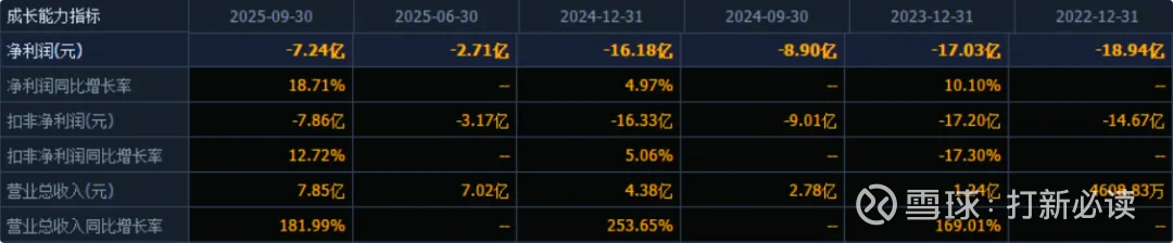根据管理层初步预测,2025 全年公司预计营业收入为12.18 亿元至 14.98 亿元,同比增长 177.79%至 241.65%;预计归母净利润为-11.68 亿元至-7.30亿元,亏损幅度同比收窄 27.82%至 54.89%;预计扣非归母净利润为-12.38 亿元至-8.78 亿元,亏损幅度同比收窄 24.20%至 46.24%。