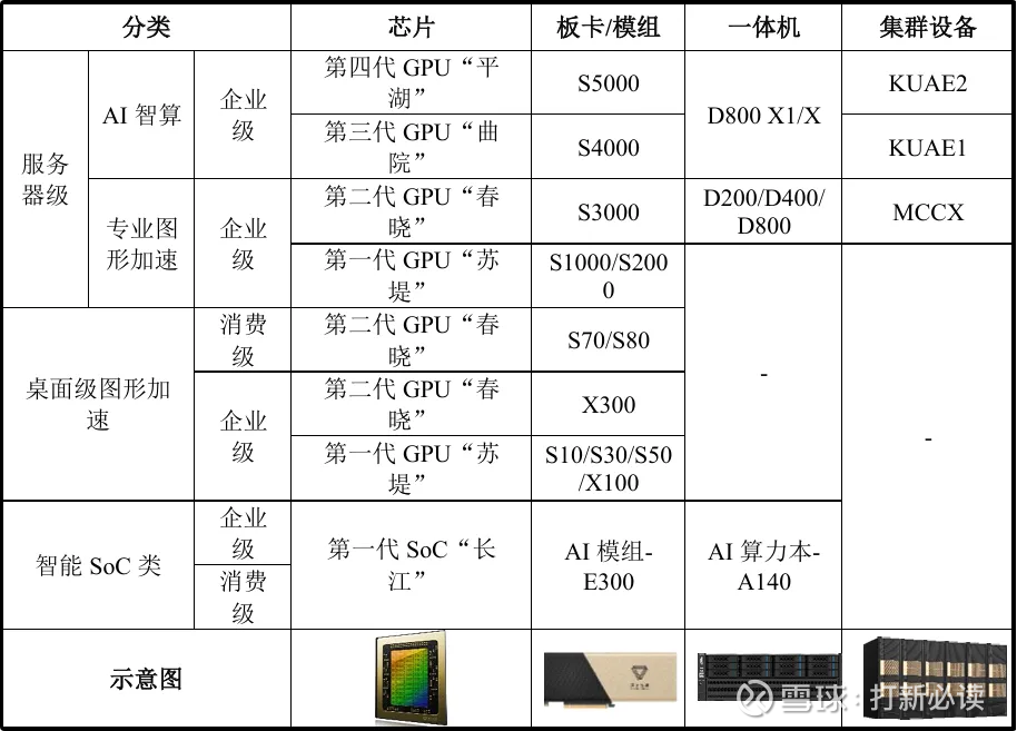 MTT S3000:包含4096个MUSA核心、128个专用张量计算单元,可为AI推理和训练、云手机、云渲染、视频云等场景提供通用智能算力支持。