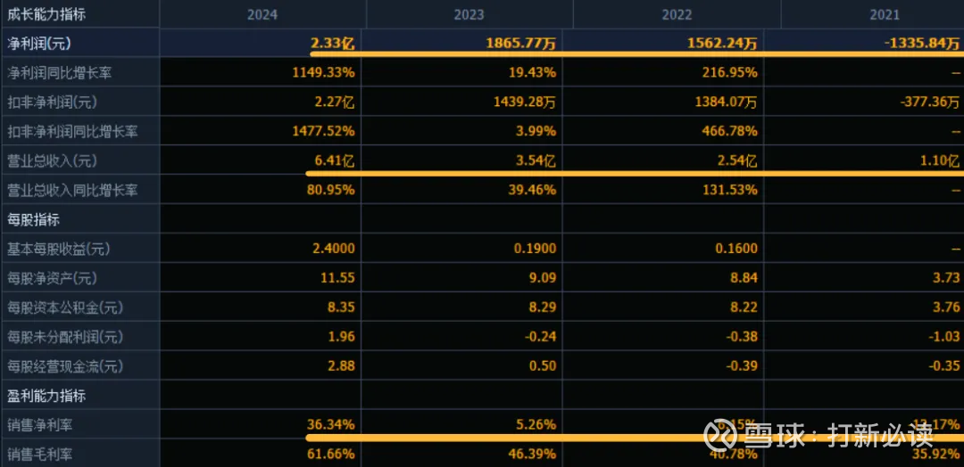 公司 2022-2024年分别实现营业收入2.54万元/3.54亿元/6.41亿元,增长率依次为131.53%/39.46%/80.95%;实现归母净利润0.16亿元/0.19亿元/2.33亿元,增长率依次为216.95%/19.43%/1149.33%。