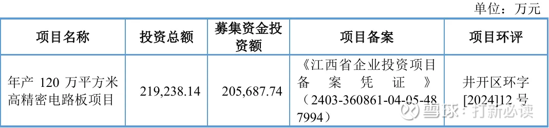 本此拟募资用途:项目总投资资金20.57亿,全部用于年产120 万平方米 高精密电路板项目,具体项目如下: