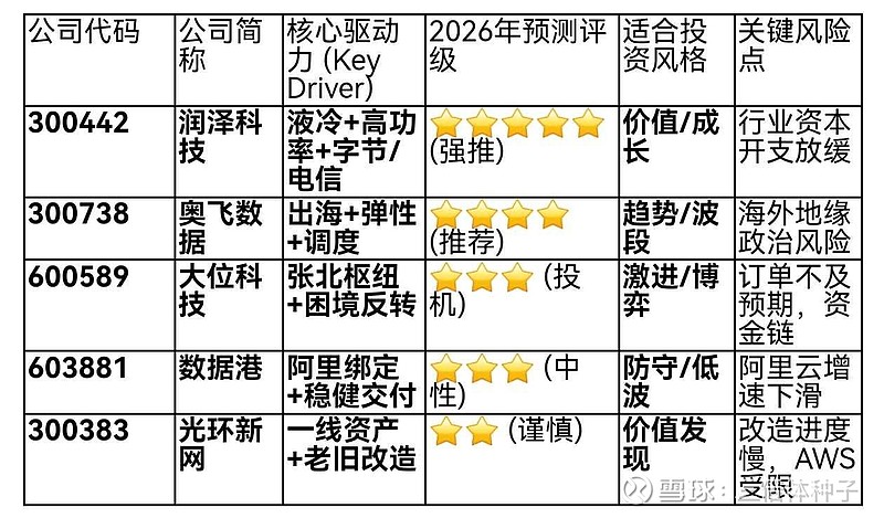 底仓 (50%):润泽科技。 这是拿来睡觉的仓位,享受行业β和公司α的双重收益。