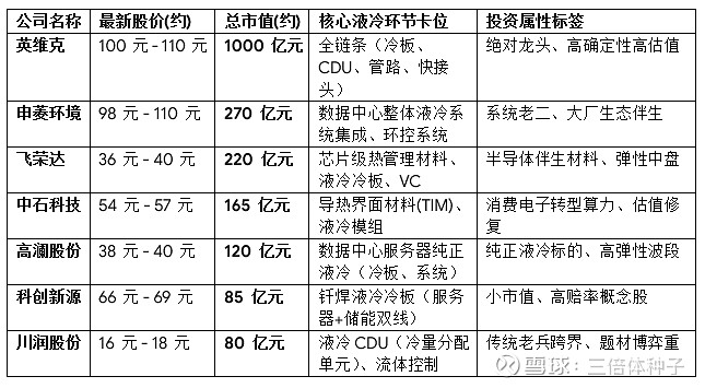 但在当前的A股市场,液冷概念鱼龙混杂,各家公司的真实壁垒、业绩兑现度和估值水位差异极大。今天我们来讨论一下$中石科技(SZ300684)$ 、$高澜股份(SZ300499)$、 $申菱环境(SZ301018)$、科创新源(300731)、飞荣达(300602)、英维克(002837)、川润股份(002272)这几家公司。我们直接用数据和底层商业逻辑说话,为你剥丝抽茧。