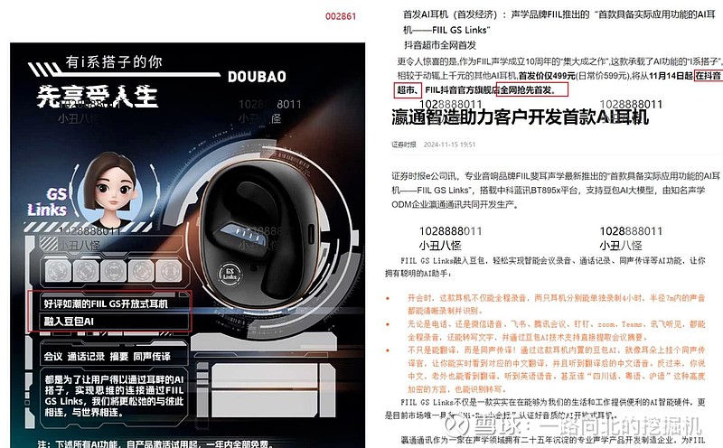 瀛通通讯与FIIL斐耳声学联合推出FIIL GS Links耳机,该产品搭载豆包大模型,由瀛通通讯共同开发生产,进一步深化与字节跳动AI生态的绑定。$瀛通通讯(SZ002861)$ $中兴通讯(SZ000063)$