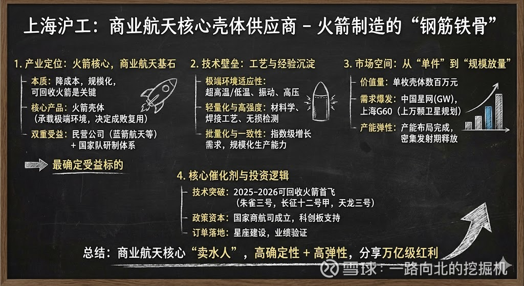 1. 产业定位:火箭制造的核心环节,商业航天腾飞的“钢筋铁骨” 商业航天的本质是降低成本、实现规模化应用,其首要瓶颈在于运载火箭。可回收火箭技术是降低发射成本、实现高频次组网的关键。无论国家队还是民营公司,都在竞相突破。上海沪工的业务正处在这一核心赛道的咽喉要道。