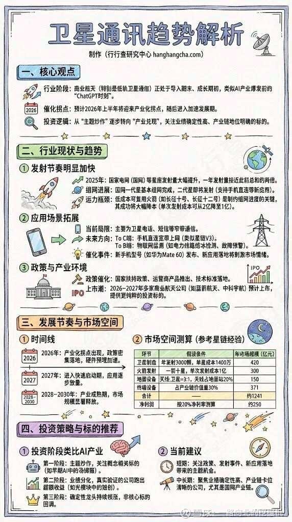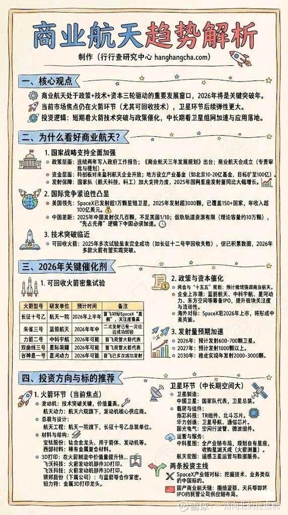 总体来看,2026年将是中国商业航天从“单点突破”走向“系统协同”的关键年份。政策提供制度保障,技术驱动成本下降,资本放大成长弹性,短期看火箭,中长期看卫星组网与应用,产业链上下游如蓝箭航天等核心企业