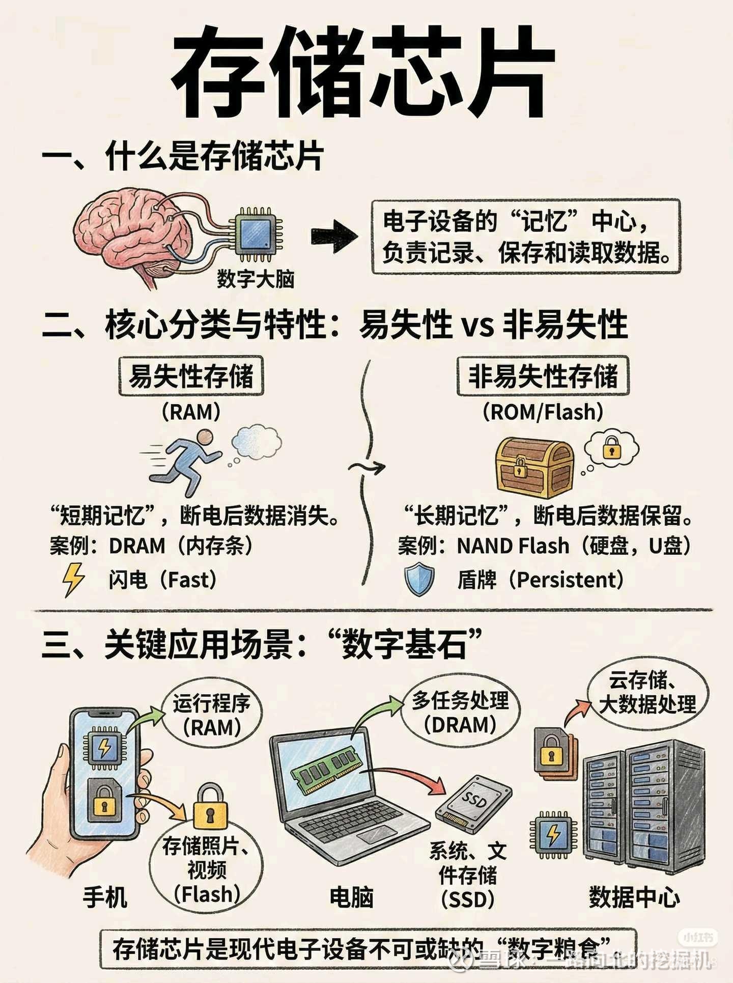 性能瓶颈: 即使你的 CPU(大脑)算得再快,如果存储芯片(记忆)读取速度跟不上,设备依然会卡顿。这就是为什么换了 SSD(NAND Flash)的电脑会感觉像新的一样。