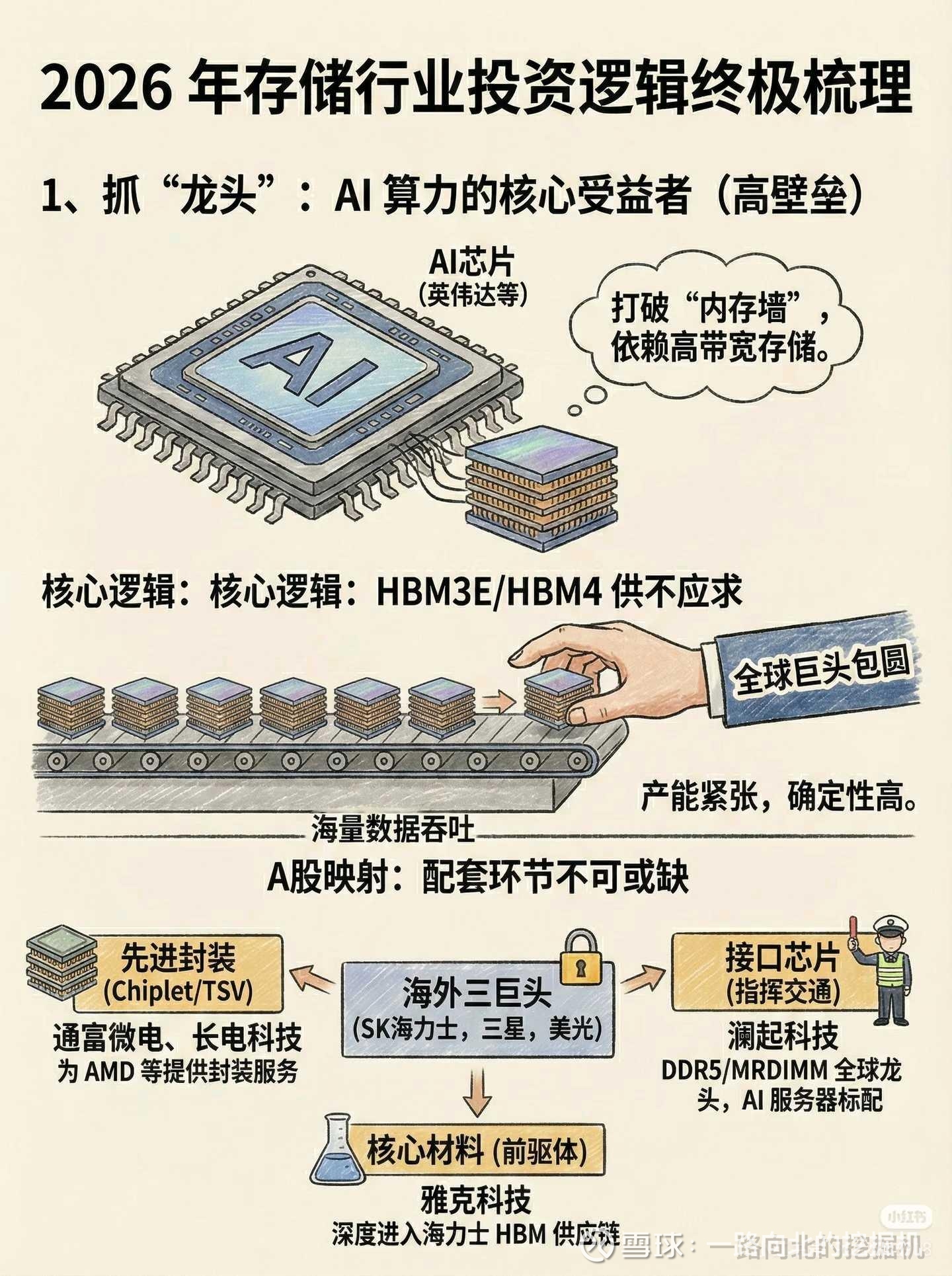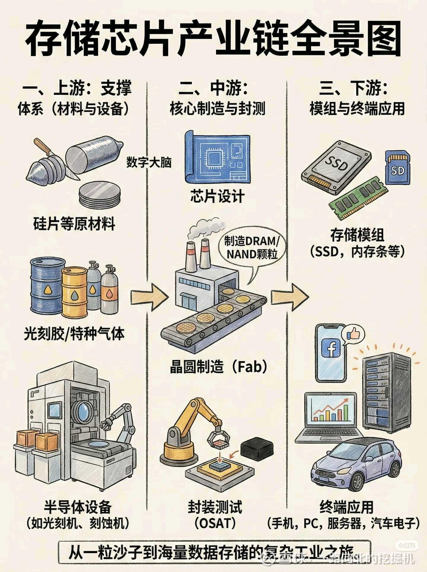 核心支柱: 它是半导体行业的三大支柱之一(另外两个是逻辑芯片和模拟芯片),市场份额极高,被誉为“工业粮食”。