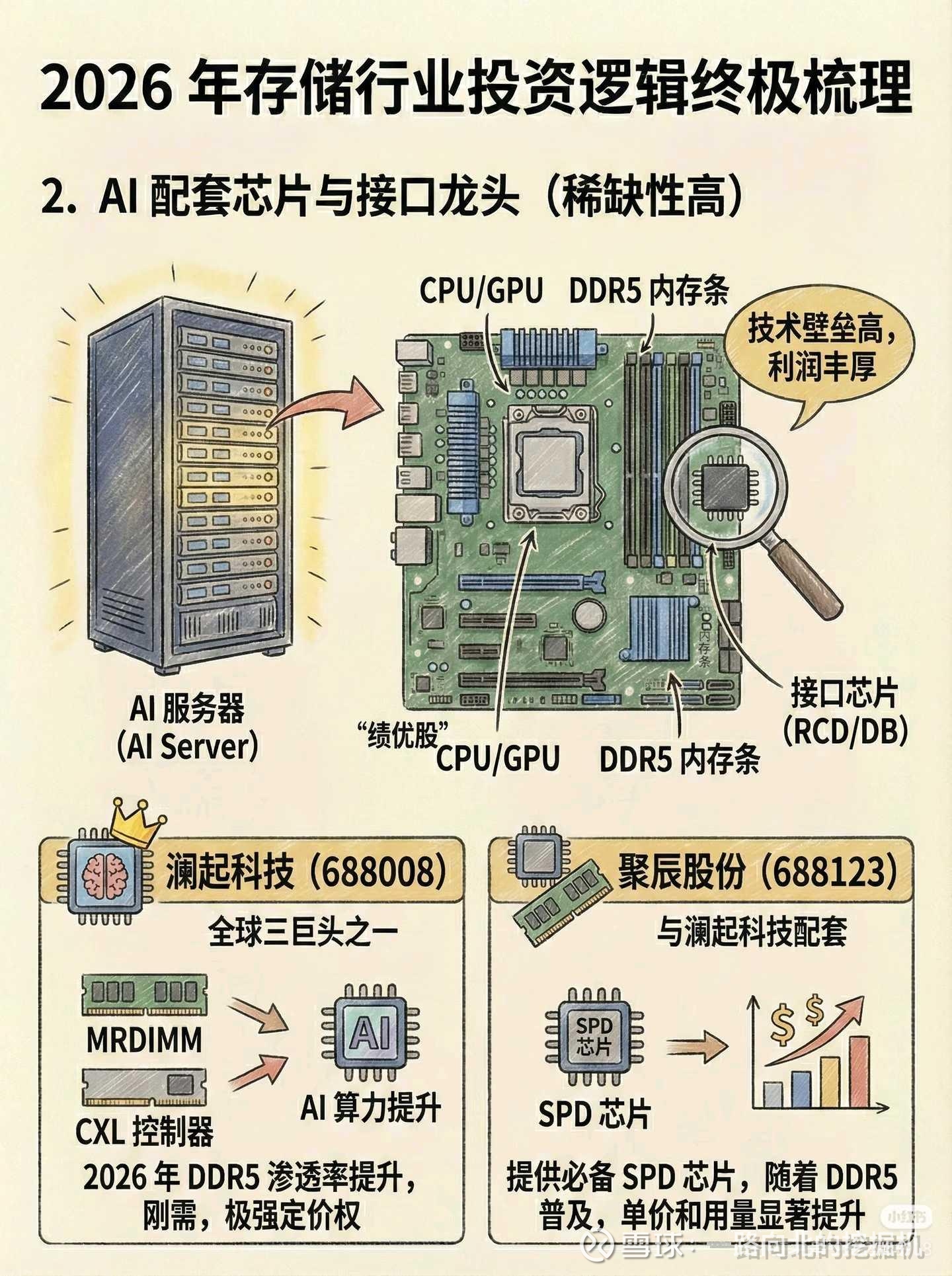 存储芯片(Memory Chip)就是电子设备的“记忆”中心。如果把电脑或手机比作一个办公室,存储芯片就是办公室里的“笔记本”和“档案柜”,负责记录、保存和读取所有的数据和指令。