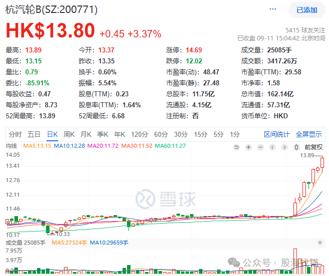 看了我之前的文章的人都知道,我在今年6月份的时候开通了B股账户,对于杭汽轮B,目前我已经参与了一些,接下来我会根据市场走向选择是获利了结还是换股到A股上市交易。
