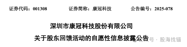 2025/10/27晚间,康冠科技(001308)发布《关于股东回馈活动的自愿性信息披露公告》,公告显示: