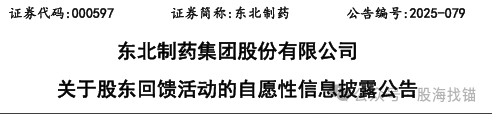 东北制药(000597)发布《关于股东回馈活动的自愿性信息披露公告》,公告信息显示: