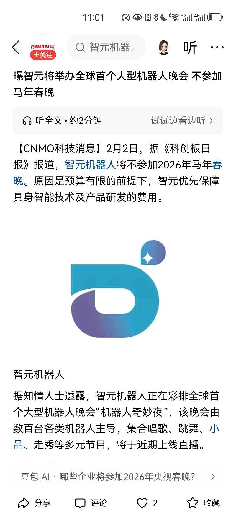 $上纬新材(SH688585)$ 首个 机器人春节联欢晚会——机器人奇妙夜,2月1X号上线直播,该晚会由智元机器人及其合作公司数百台各类机器人主导,集合唱歌、跳舞、小品、走秀等多元节目,将开启人类历史上首次/首场由机器人为人类奉献的大型春节联欢晚会节目!晚会上,除了大家熟知的灵犀X2,预计上纬启元Q1机器人也将隆重登场,为大家奉献一场精彩的节目。