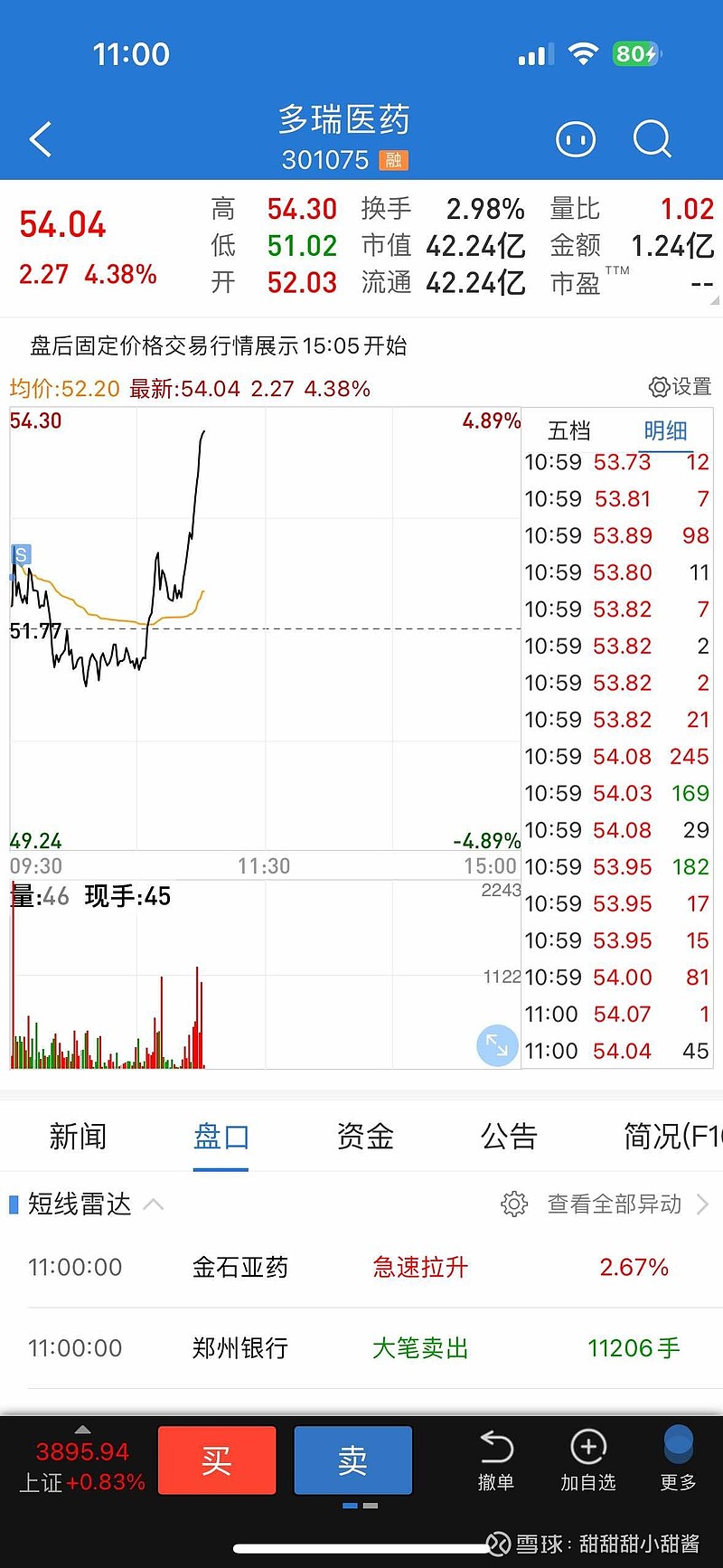 $多瑞医药(SZ301075)$
