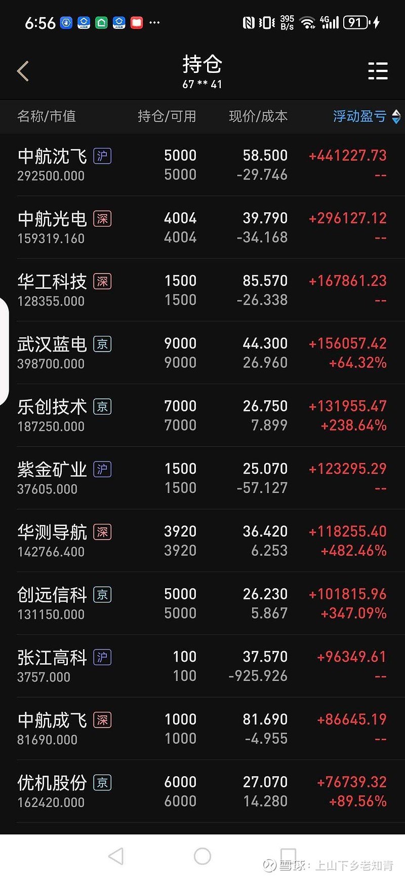 刚才看到一个帖子说,他准备把股票持有三年,在他看来持有三年就是长期投资,我不禁想说股票持有三年时间长吗?我持股24年的华工科技,1500股,持仓成本负26.338,浮盈167861.23,这张截图除了北交所的股票外,持有年限最短的是中航沈飞,18年初借黑豹上市打开涨停板后于春节前22-26区间买入,21年10转4后于80元卖出后留有的底仓。中航成飞是10年前名叫中航电测时(300114)买的,可惜在22年10月买出1000股去换刚出三季报每股收益5元多的股价43.68的盛新锂能,当年11月看到碳酸锂每吨从30多万跌到18万时,马上将盛新锂能以44.72元卖出换入29.52元的藏格矿业。长期持有要看长期持有的股票值不值得持有,持有的逻辑有变,就应及时卖出。因碳酸锂大跌,22年3季报每股盈利5.09元的盛新锂能,24年1季报出现亏损,当年每股收益亏0.69,股价也从我买入的44.72跌至昨收盘的18.53。长期持有要看长期持有的品种,值得长期持有的,持有时间越长越好。94年山西汾酒上市后长期在3-4元徘徊。若94年以4万元买1万股山西汾酒,经95年10送1,06年10送3.3,11年10送10,20年10送4,1万股变成40964股,按昨收盘204.45计,市值8375089.80,再加上历年的分红,当年投资4万,21年后变为850万。若能做到长线这样炒股,那是股市的股神,股仙。