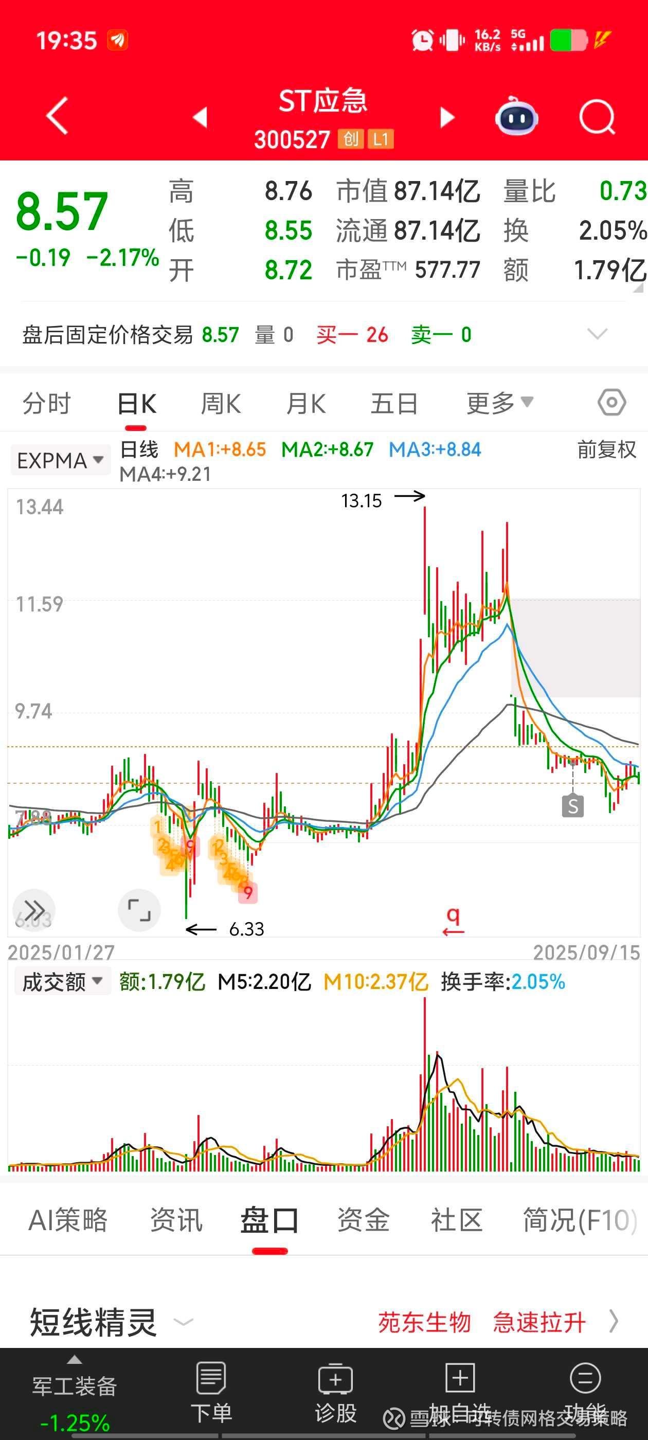 :今日涨幅-2.17%,没有任何操作,唉,今天又亏了14156元,总亏损44545元。收盘持仓:74504股。